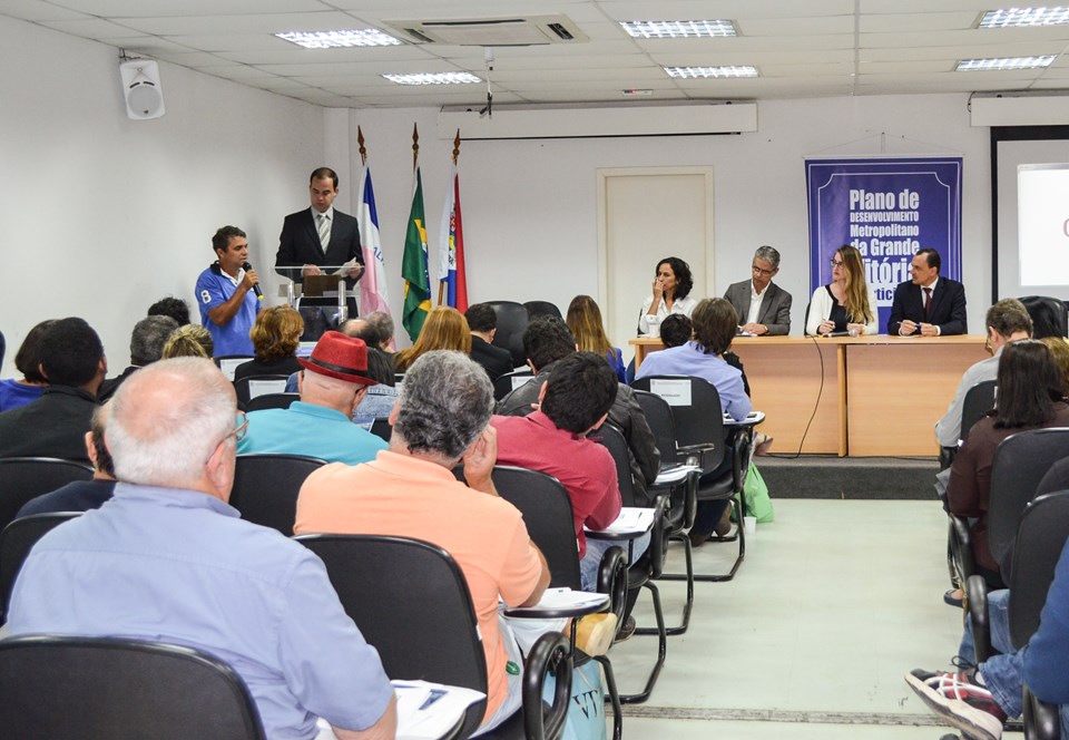 O auditório da Prefeitura de Vila Velha recebeu mais de 100 pessoas dispostas a contribuir com a elaboração do Plano de Desenvolvimento Metropolitano da Grande Vitória durante a audiência pública realizada na noite desta segunda-feira (4). Os temas mais abordados pela população foram Mobilidade Urbana e Meio Ambiente.