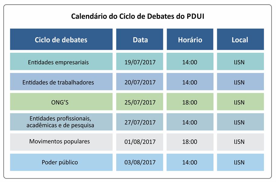 O Ciclo de Debates faz parte de um dos estágios atuais de construção do PDUI, que é o da elaboração de cenários. Neste momento, representantes do poder público e dos segmentos da sociedade civil irão se reunir para pensar os desafios da metrópole a serem superados e as oportunidades de ações possíveis de serem implementadas nos próximos 30 anos.